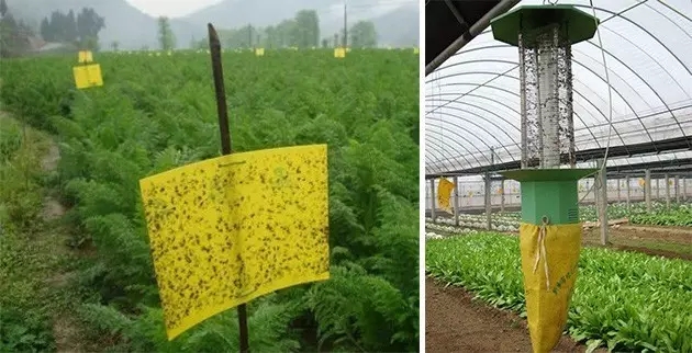 用黄板诱杀蚜虫和白粉虱,用银灰色反光膜趋避蚜虫,用黑光灯、高压汞灯、振频式杀虫灯和糖醋液,诱杀蛾类、小地老虎、蝼蛄等。大棚里可在通风口安装防虫网。夏季闲棚高温进行土壤消毒等。