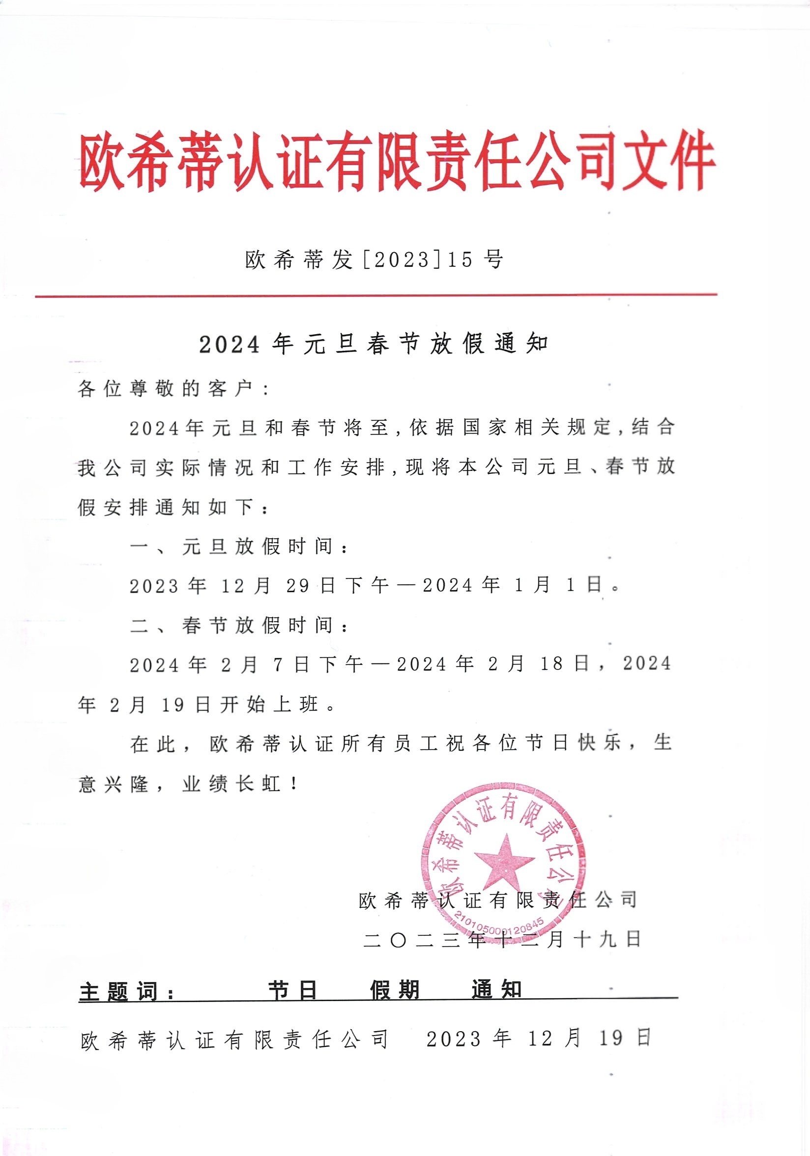 2024年元旦春节放假通知