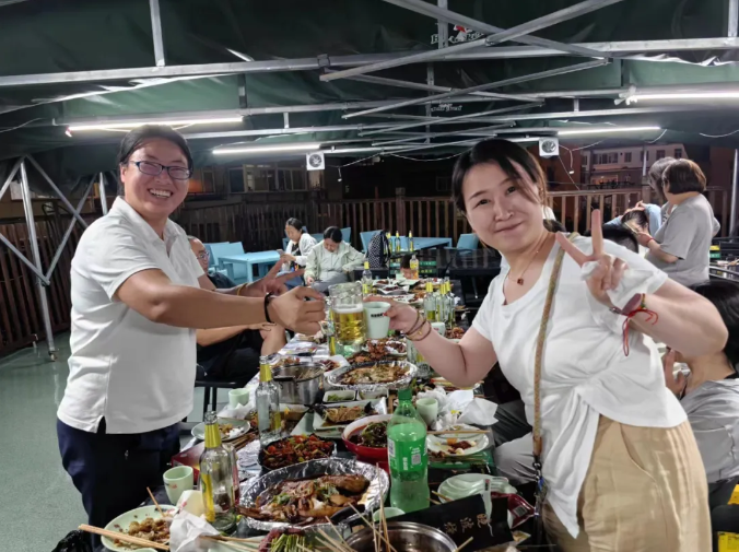 旅行的最后当然离不开美味的烧烤,大家一起举杯共饮,一群人边吃边聊,气氛轻松愉快。生活需要人间烟火,工作之余需要欢乐小聚,相聚即是美好,心在一起就是团队!热热闹闹的欧希蒂人,互相串桌交流日常心得,到处都飘散着欧希蒂人的欢声笑语,同事之情也在这一刻伴随着炙热的炭火迅速升温。