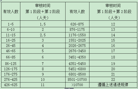 3.组织正常工作期间(如轮班制组织)安排的审核时间可以计入有效的管理体系认证审核时间,但往返多审核场所之间所花费的时间不计入有效的管理体系认证审核时间。