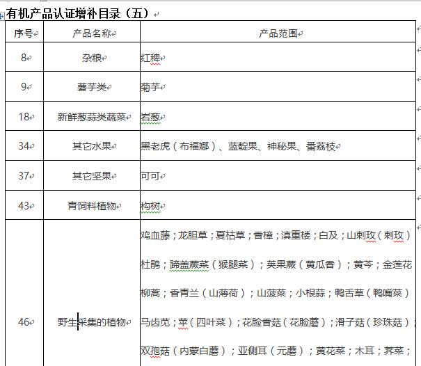 有机产品认证增补目录(五)